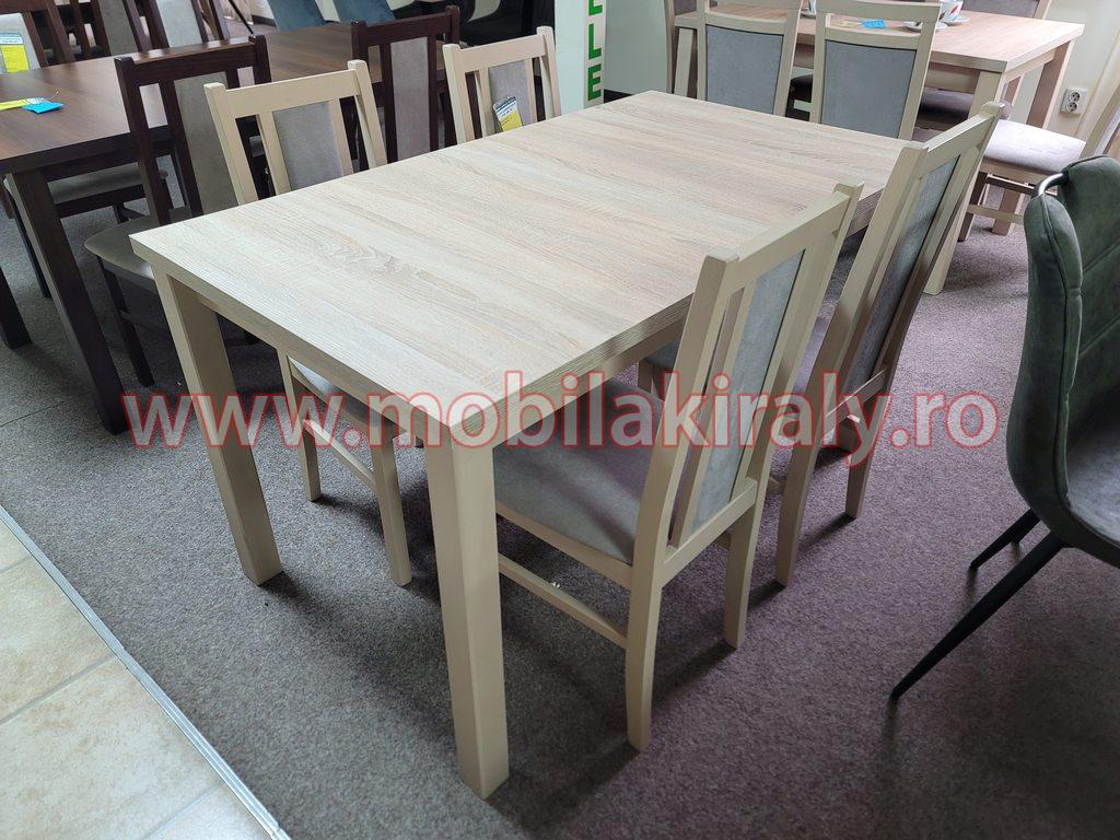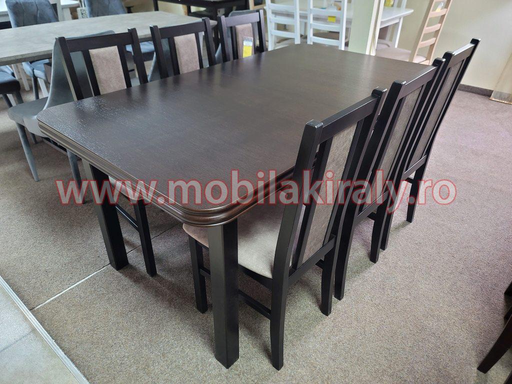 Masa extensibila cu blat din MDF furniruit si structura din lemn masiv este o masa impunatoare, eleganta, potrivita incaperilor in stil clasic. Materialele din care este realizata masa ii ofera o rezistenta sporita. O puteti integra cu usurinta atat in bucatarie cat si in living.