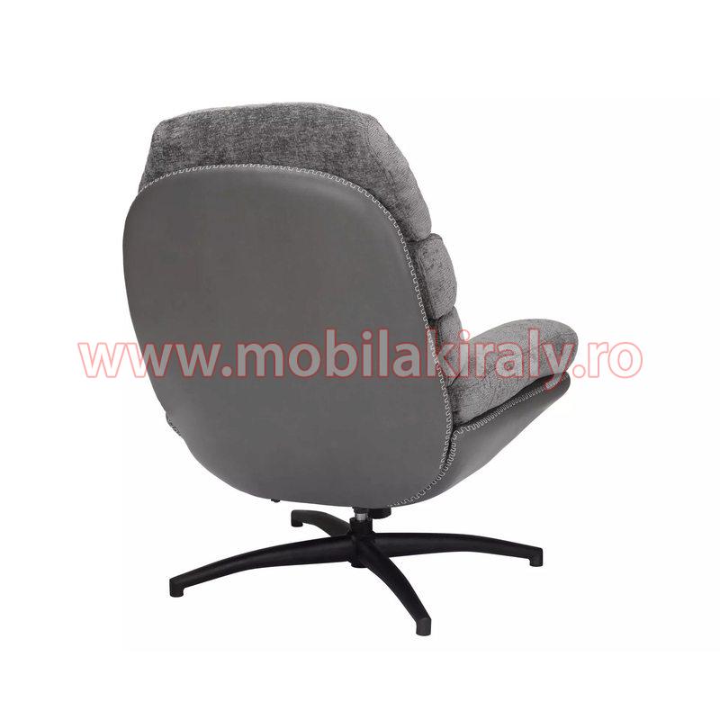 Fotoliul este tapitat cu stofa si piele ecologica.