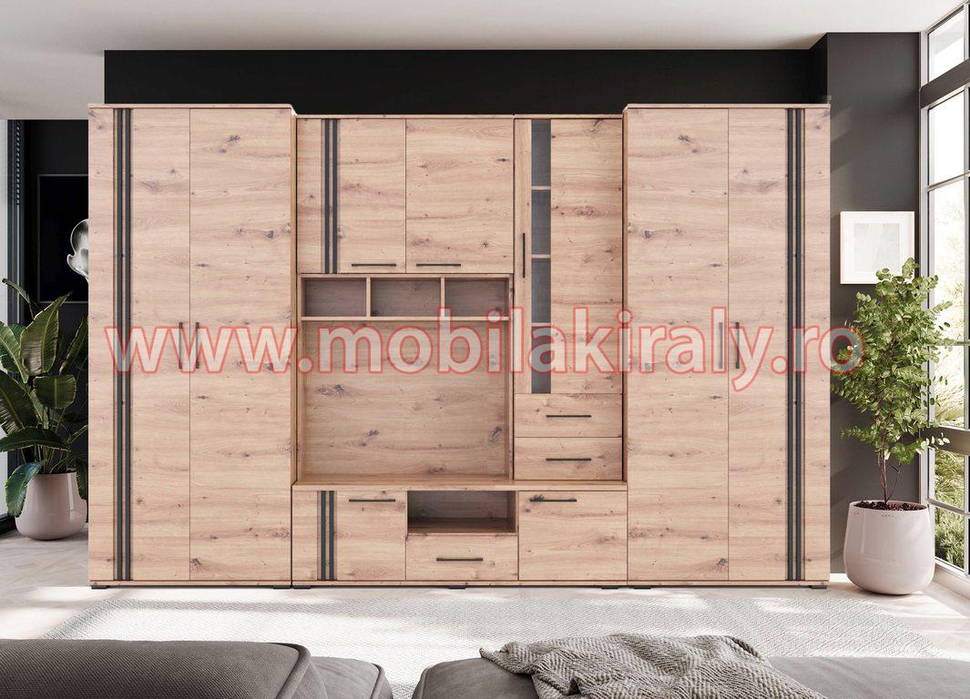 Aceasta imbinare de culori formate din nuante calde, creeaza un ambient modern, calduros si primitor. In plus, imbinarea dintre rafturile deschise si respectiv inchise este extrem de practica, deoarece va ofera libertatea de a pastra la vedere doar ceea ce va reprezinta.