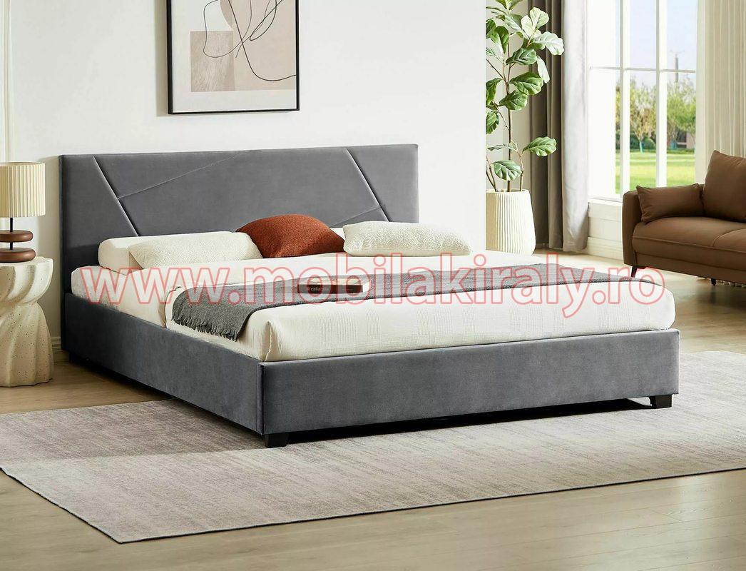Este un pat tapitat modern, o soluție compactă și elegantă, cu dimensiunea de 90 x 200 cm, perfectă pentru spații mai restrânse sau camere single. Tapițeria gri combinată cu detalii în stejar adaugă un aer modern și călduros în același timp, oferind confort și stil în dormitor.