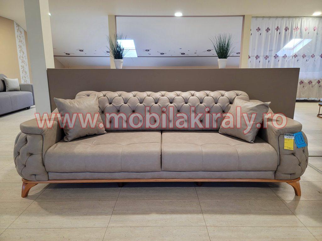 Canapeaua se remarcă prin tapițeria capitonată cu butoni fini, care aduce un aer de distincție decorului tău. Pernele decorative, cu patternuri complementare, contribuie la un dinamism vizual, transformând canapeaua într-un element central al camerei. Materialele de înaltă calitate asigură un confort excelent, făcând din această canapea alegerea perfectă pentru momentele de relaxare, fie că vrei să te bucuri de o lectură plăcută, fie că îți dorești un somn odihnitor.