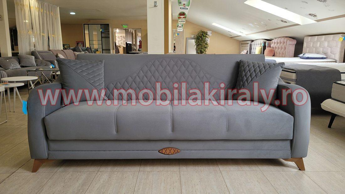 Canapeaua este extensibila cu 3 locuri si prevazută cu lada pentru depozitare lenjerie.
