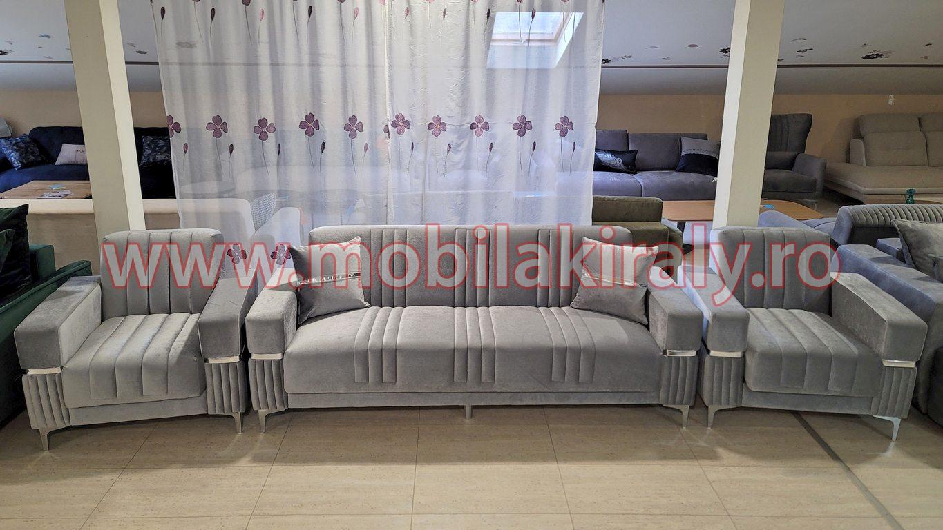 Set canapea extensibilă si fotolii semi extensibile 3+1+1, gri – Un mix perfect de confort și stil