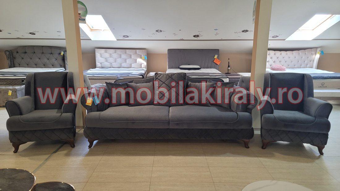 Canapea extensibila cu lada pentru lenjerie + 2 fotolii fixe
