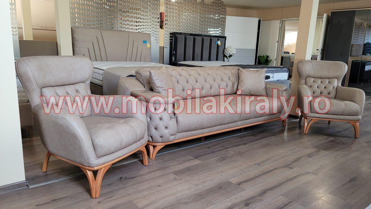 Acest set compus din canapea fixă de 3 locuri și 2 fotolii in living genereaza un ambient deosebit iar daca alegerea dvs. include si stilul chester modern atunci amenajarea zonei de living se contureaza intr-o nota de lux si eleganta definita de rafinamentul detaliilor.