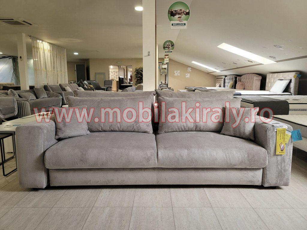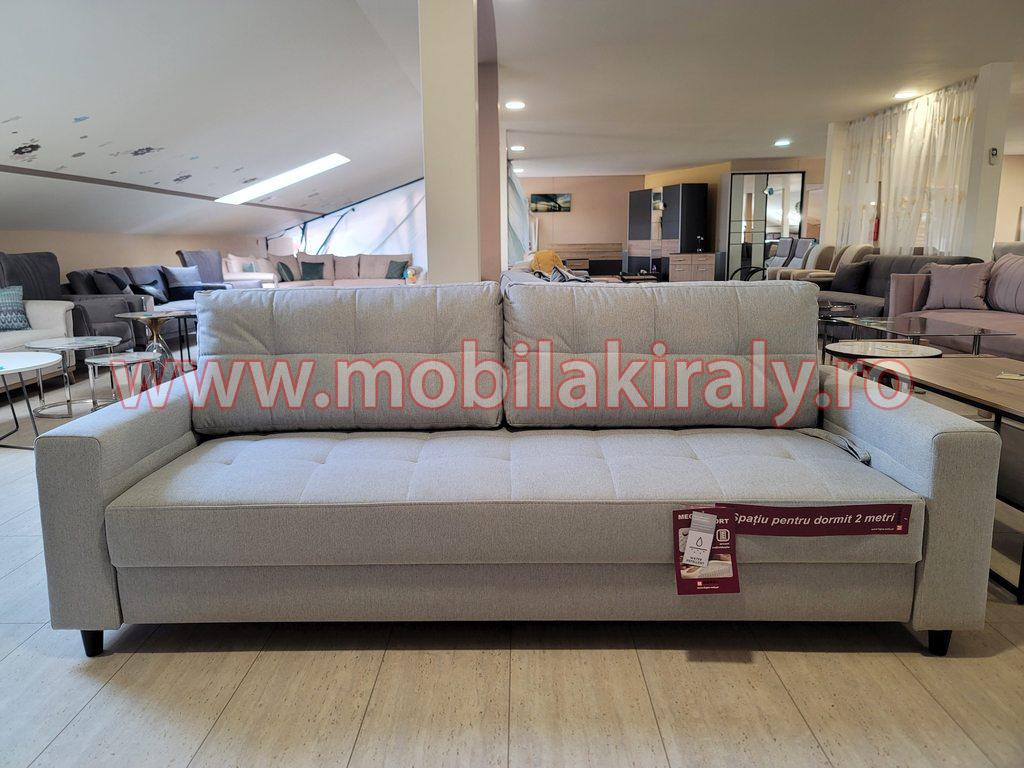 Este o canapea extensibila si are o extensie de tip rabatabil, sezutul se deplaseaza catre inainte, iar in spatiul format se rabateaza partea din spate a canapelei.