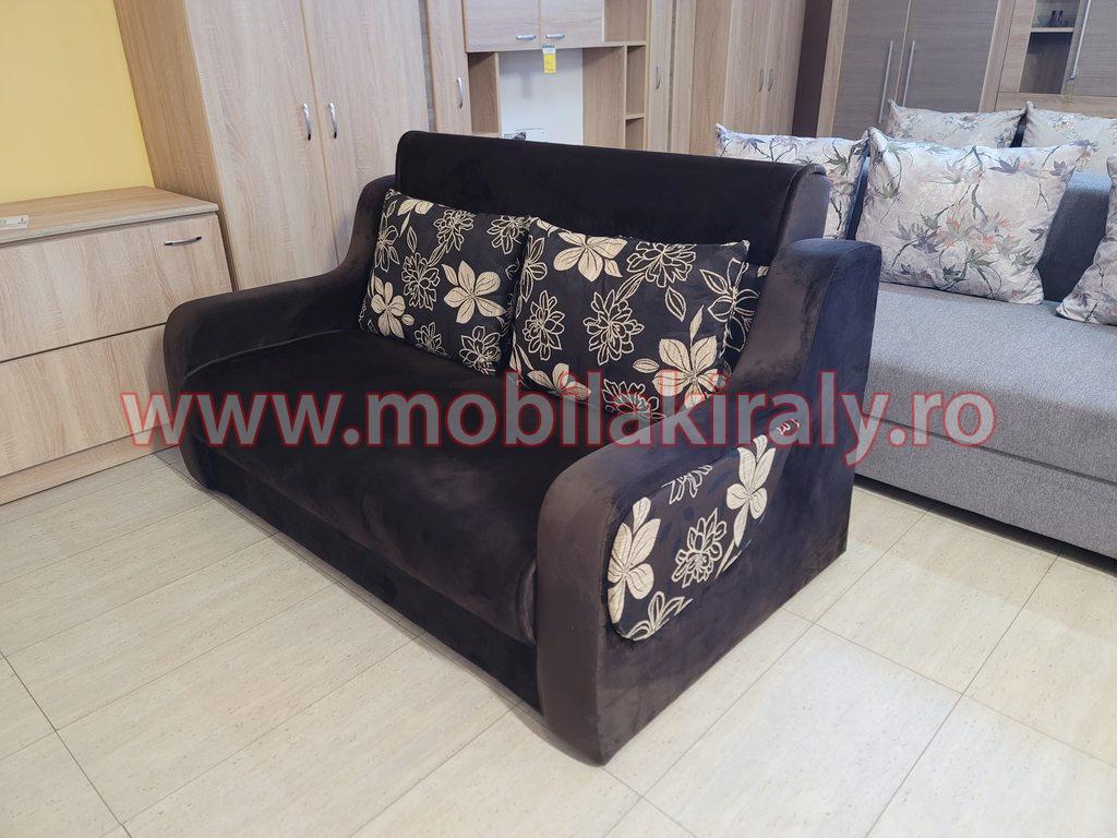 Fotoliu extensibil cu lada depozitare, tapitat cu material textil plusat.
