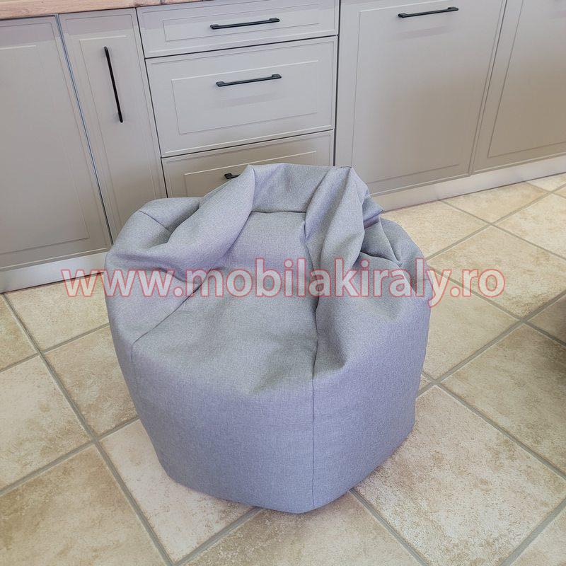 Fotoliu de tip sac (” Bean Bag “) din material textil cu umplutura din granule de polistiren expandat care iti ofera posibilitatea sa te relaxezi in ce pozitie doresti.