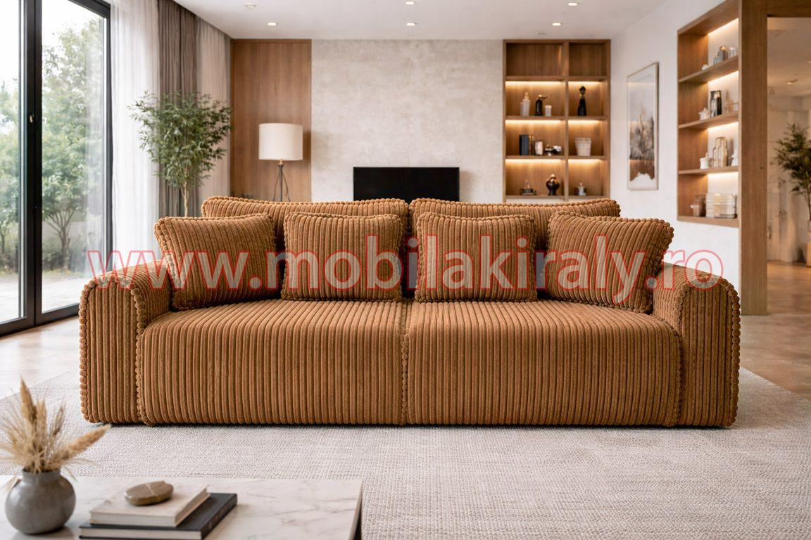 Canapea extensibila cu lada pentru depozitare si doua fotolii fixe