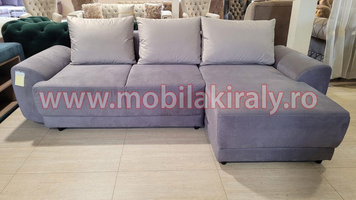 Coltar extensibil cu lada pentru depozitare, reversibil stanga/dreapta, 1 brat etajera, cu perne incluse.