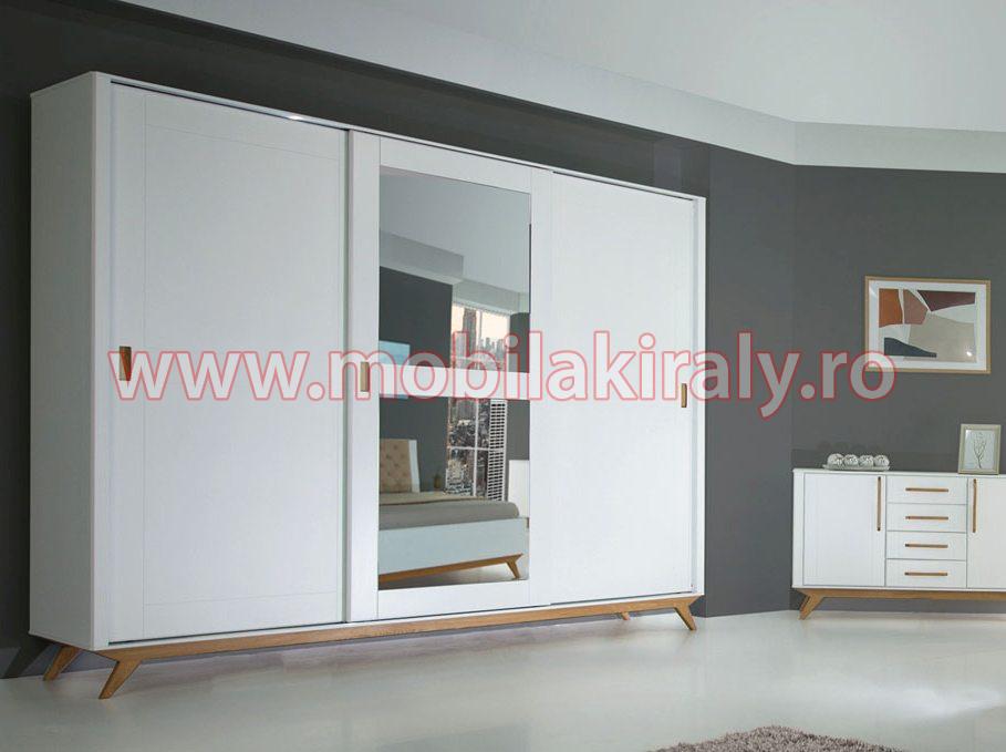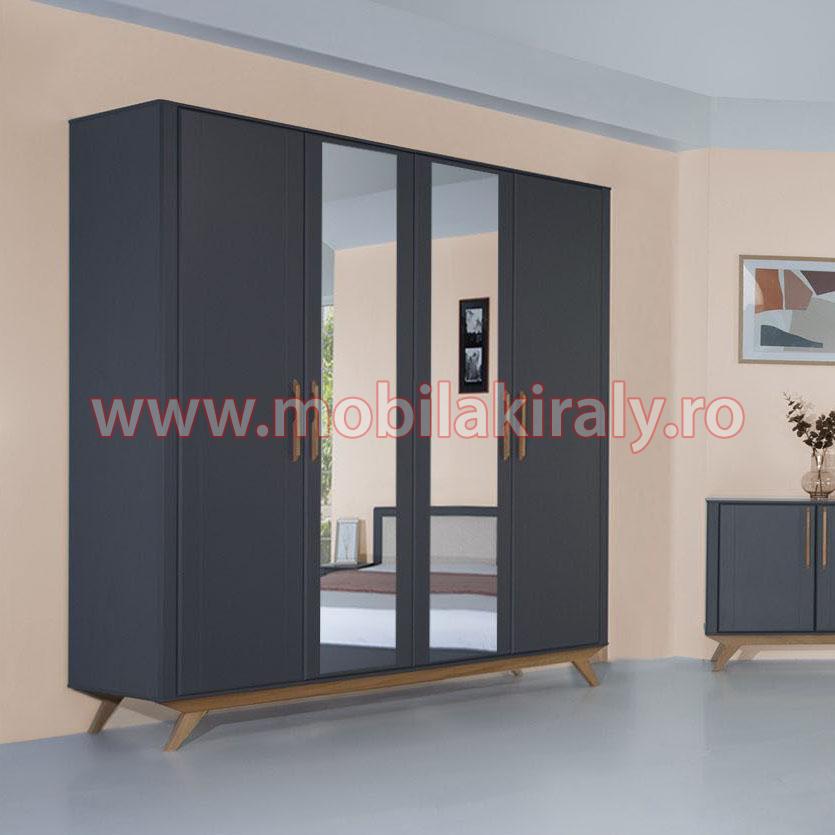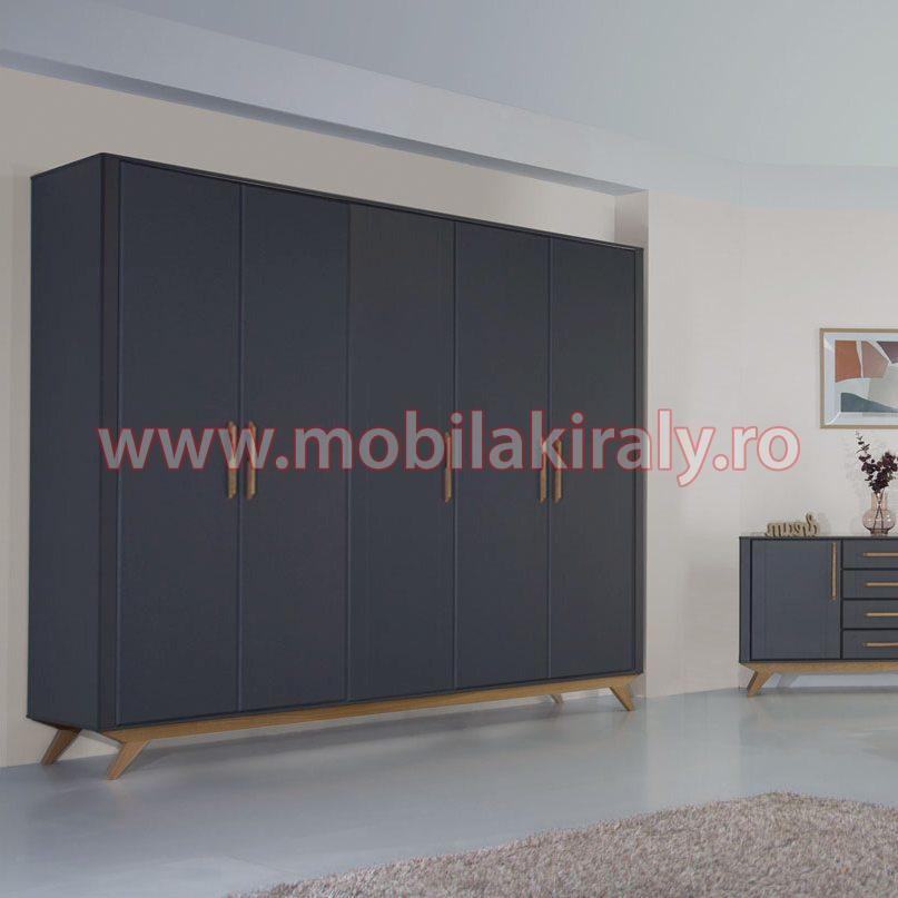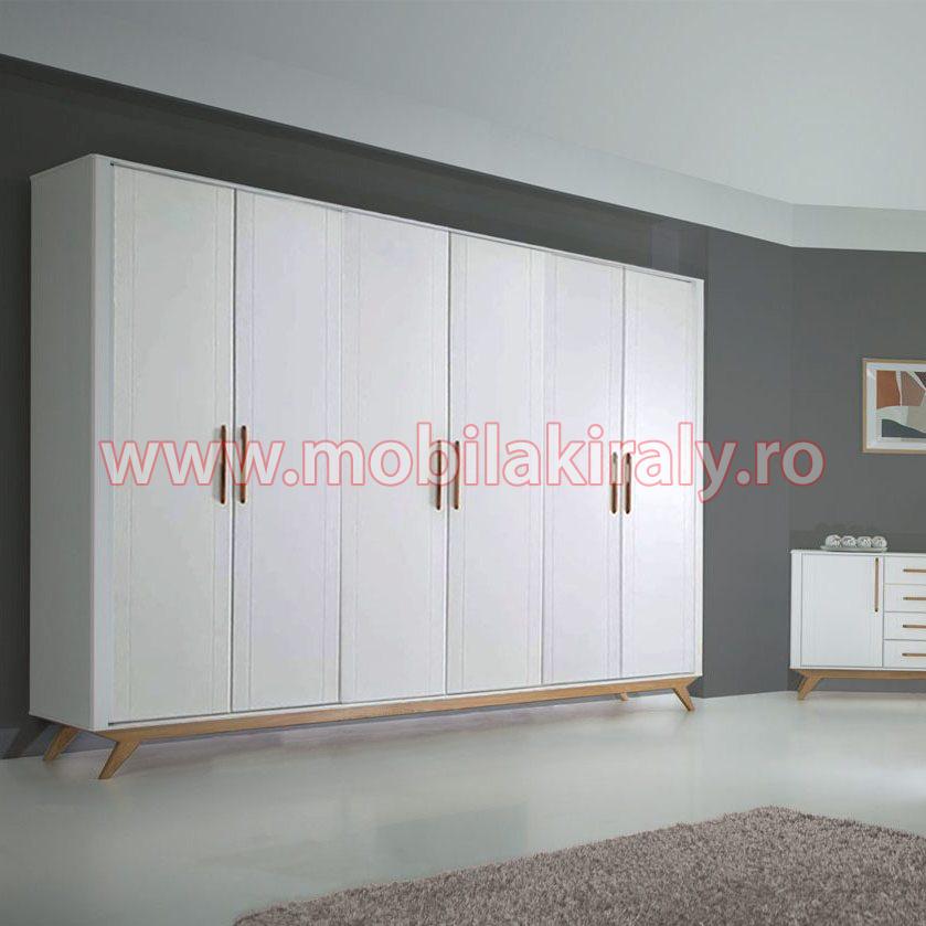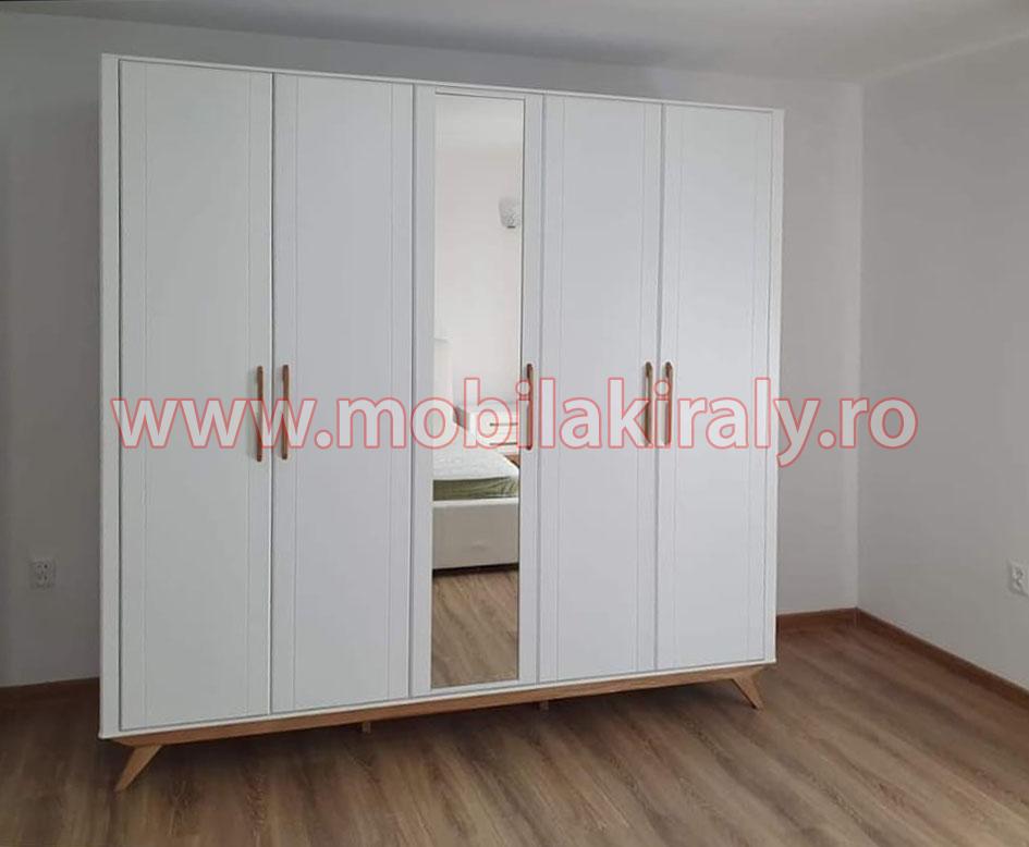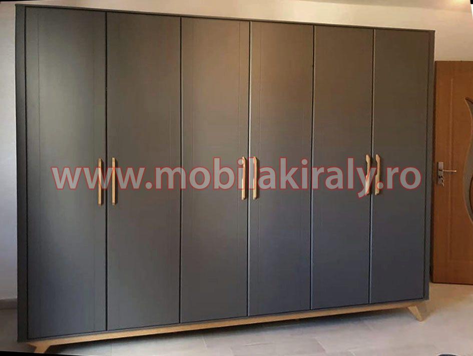 Acest dulap se poate realiza la comanda pe diverse dimensiuni, cu trei, patru, cinci sau chiar sase usi batante, cu 2 sau 3 usi glisante, fara oglinda sau chiar cu mai multe oglinzi, pe alb sau gri.