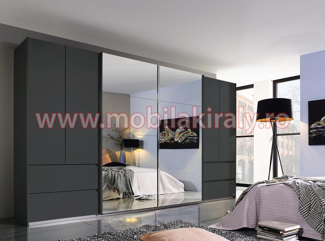 Dulap cu 4 usi glisante si oglinda, usile din mijloc sunt dotate cu mecanism de sincronizare.