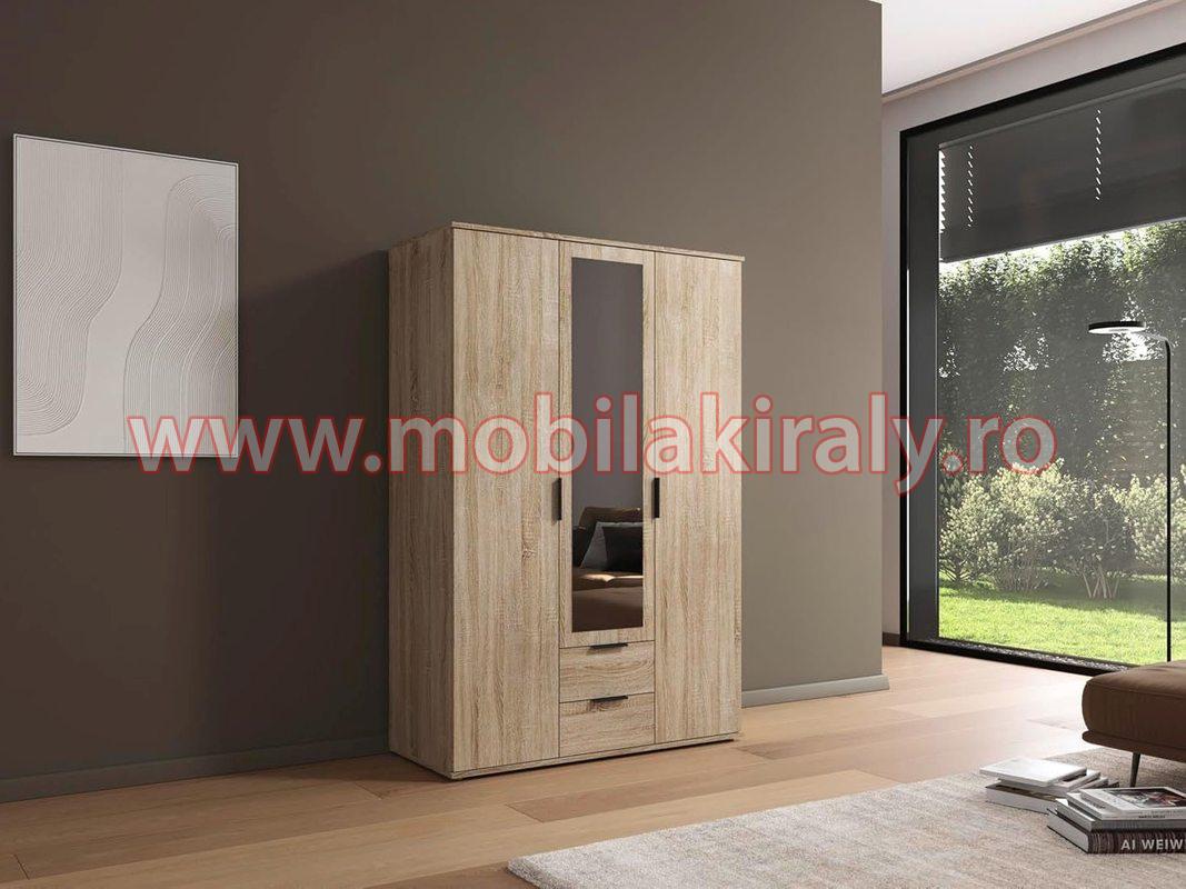 Este un dulap cu trei uşi, echipat cu suficient spaţiu pentru depozitarea hainelor.