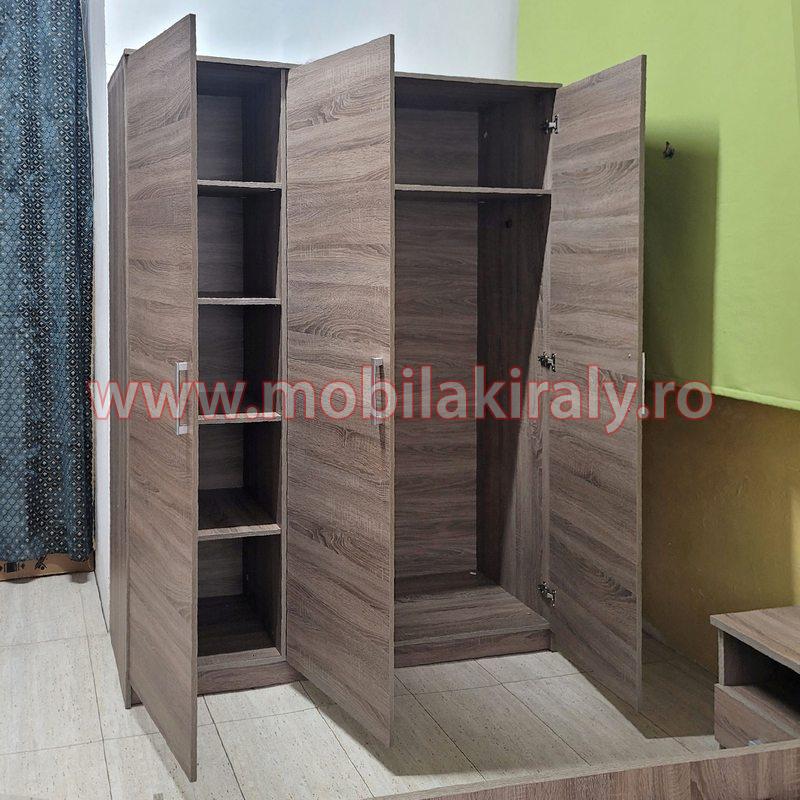 Este un dulap cu trei uşi, echipat cu suficient spaţiu pentru depozitarea hainelor.