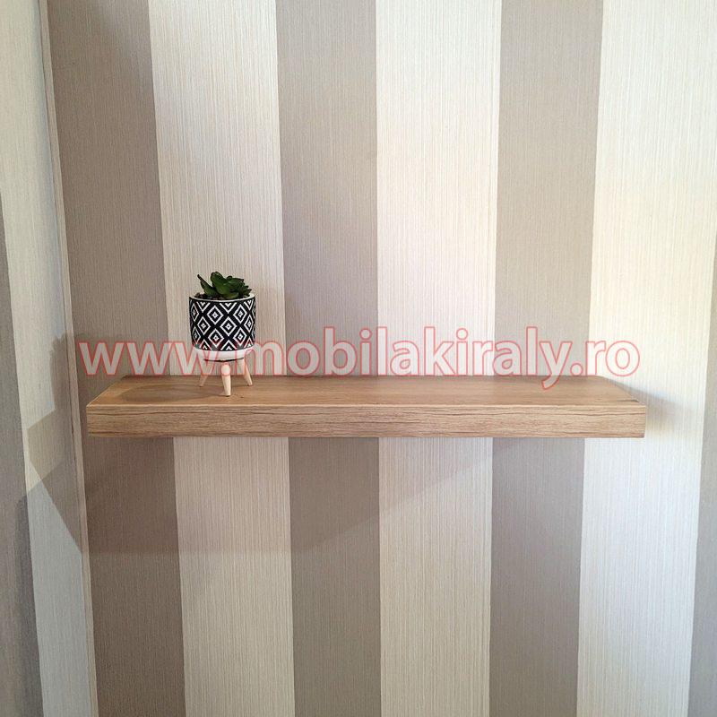 Acest raft de perete are un aspect modern si poate fi utilizat cu succes in orice incapere: sufragerie, dormitor, birou, bucatarie etc.