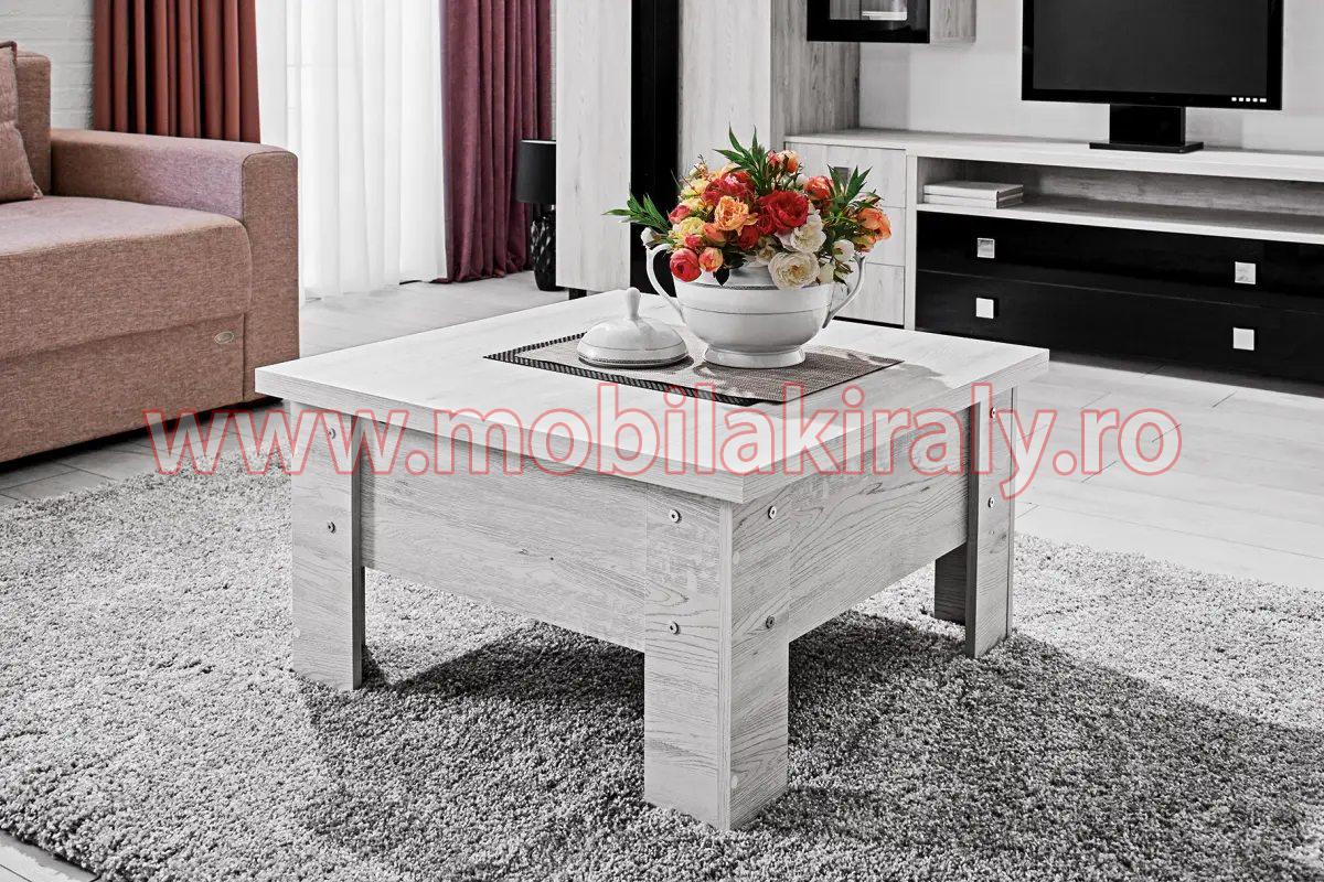 Un model practic de masa, transformabila din masuta de cafea cu dimensiunea de 80 x 45 x 80 cm intr-o masa de sufragerie cu dimensiunea de 160 x 75 x 80 cm.