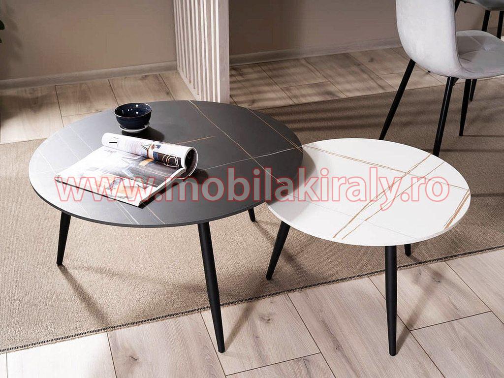 Material: Blatul este realizat din ceramica cu efect de marmura, iar cadrul din metal