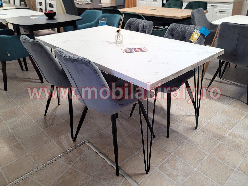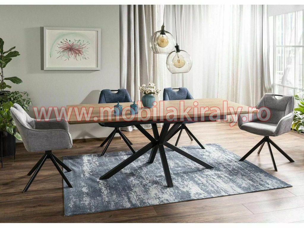 Riflajul este un hit actual in designul interior. Adaugarea acestui element la piciorul mesei face din aceasta o piesa de mobilier extrem de la moda, care va fi o adevarata decoratiune a livingului sau a bucatariei. Blatul mesei si cadrul sunt realizate din placa laminata durabila in culoarea la moda a stejarului artizanal si negru. Totul arata foarte original si inedit, pastrand in acelasi timp elemente clasice.