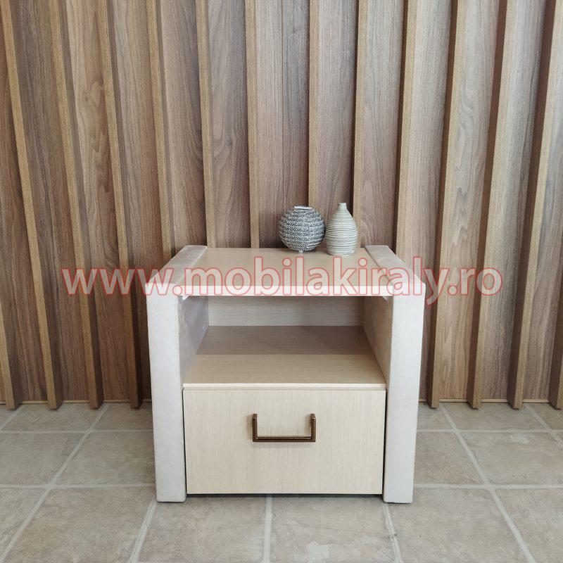 Noptieră cu design curbat interesant, cu un raft superior și sertar pe sistem de glisare.