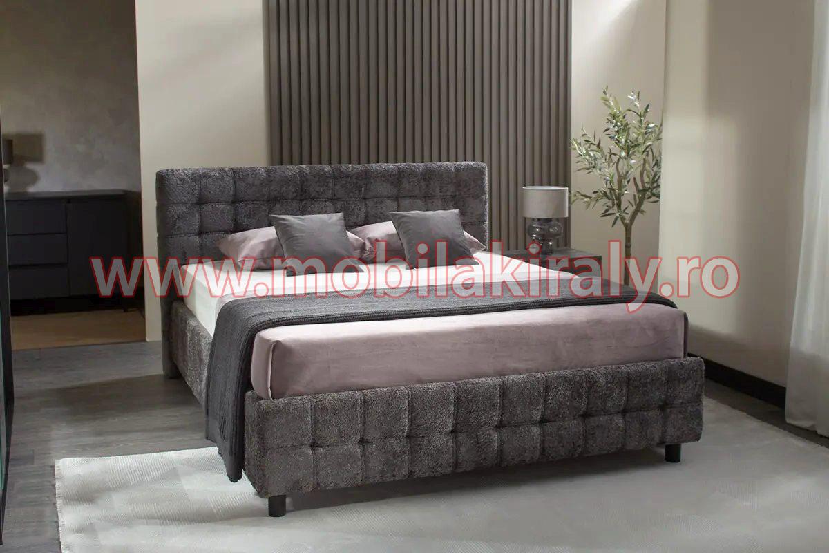 Pat tapitat cu stofa catifelata, somiera fixa 120 x 200 cm este inclusa.