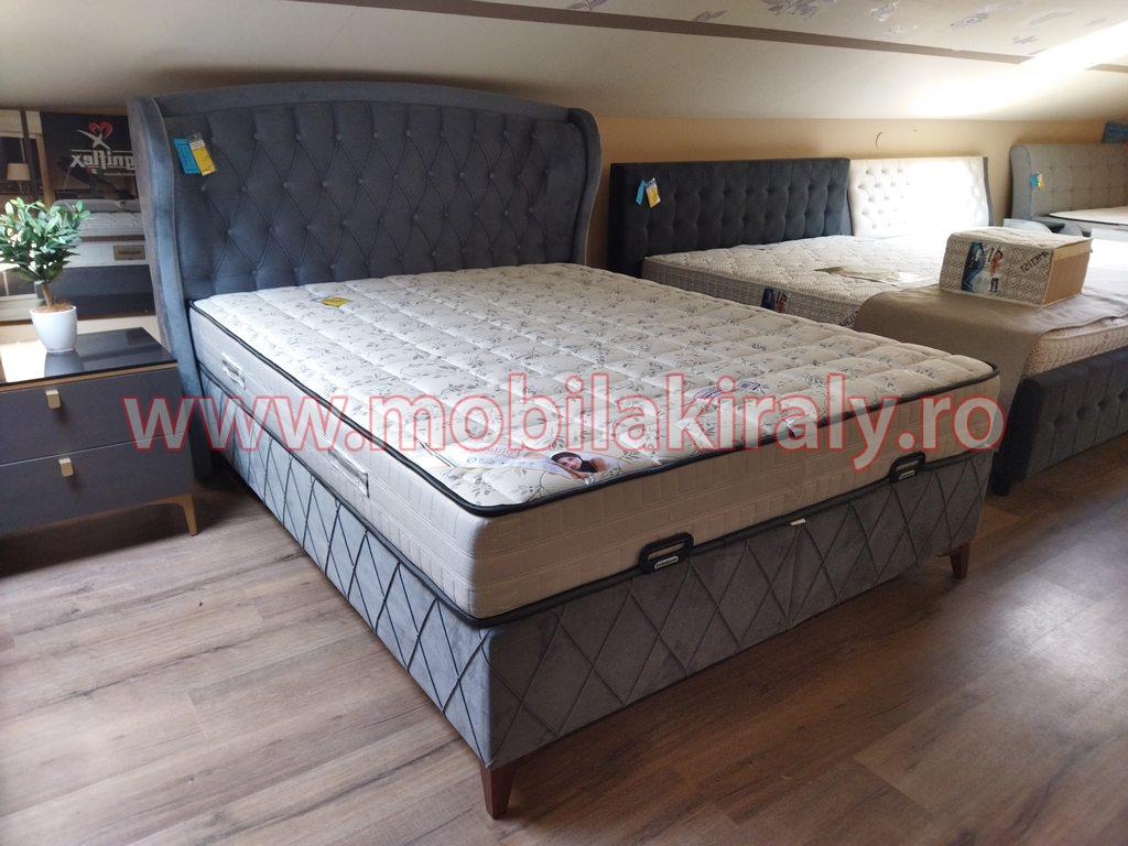 Pat tapitat cu lada si somiera dubla rabatabila cu 4 pistoane