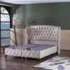 Pat modern din categoria premium cu spătar moale tapițat cu stofă plușată foarte rezistentă si plăcută la atingere.