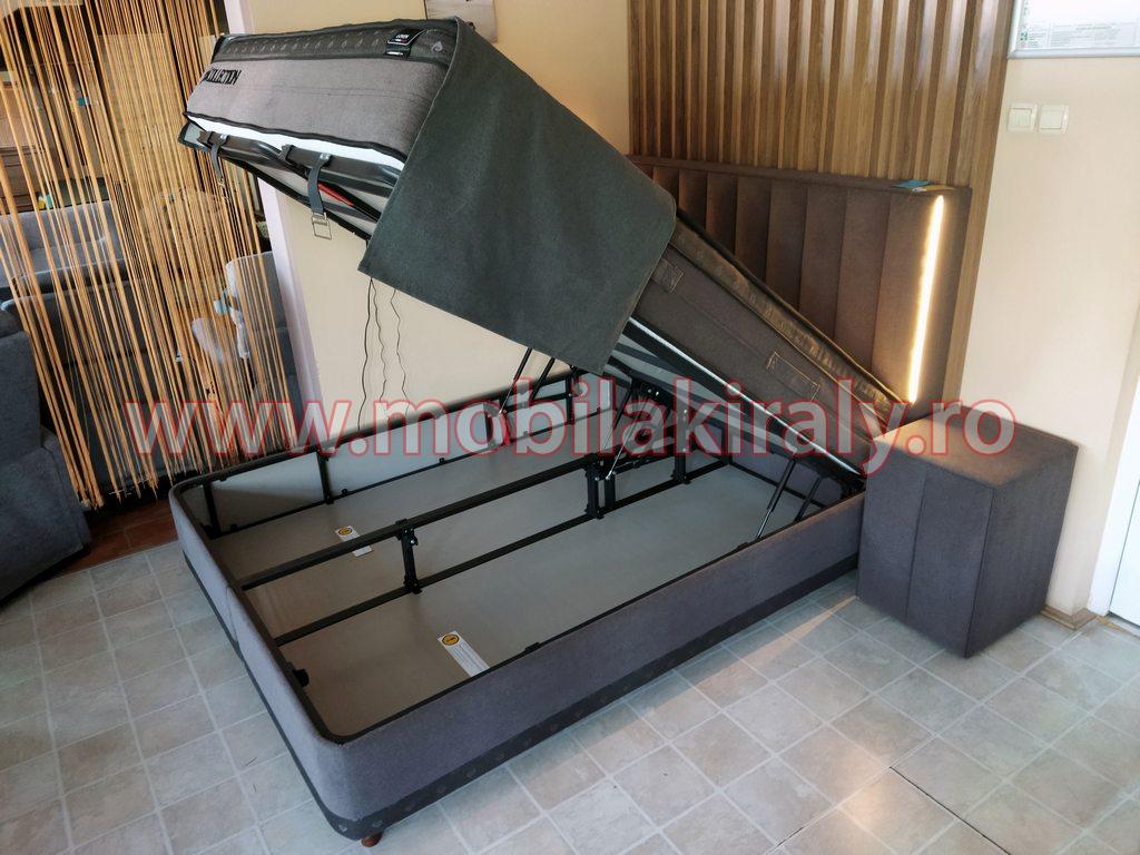 Pat tapițat cu somieră rabatabilă și ladă de depozitare