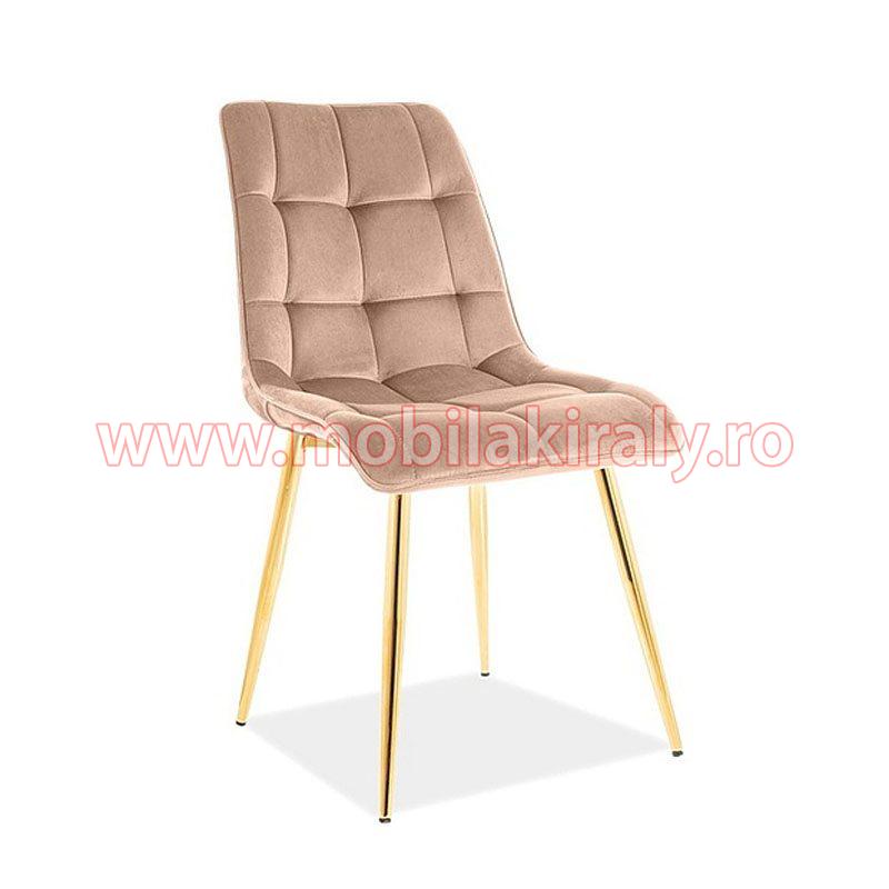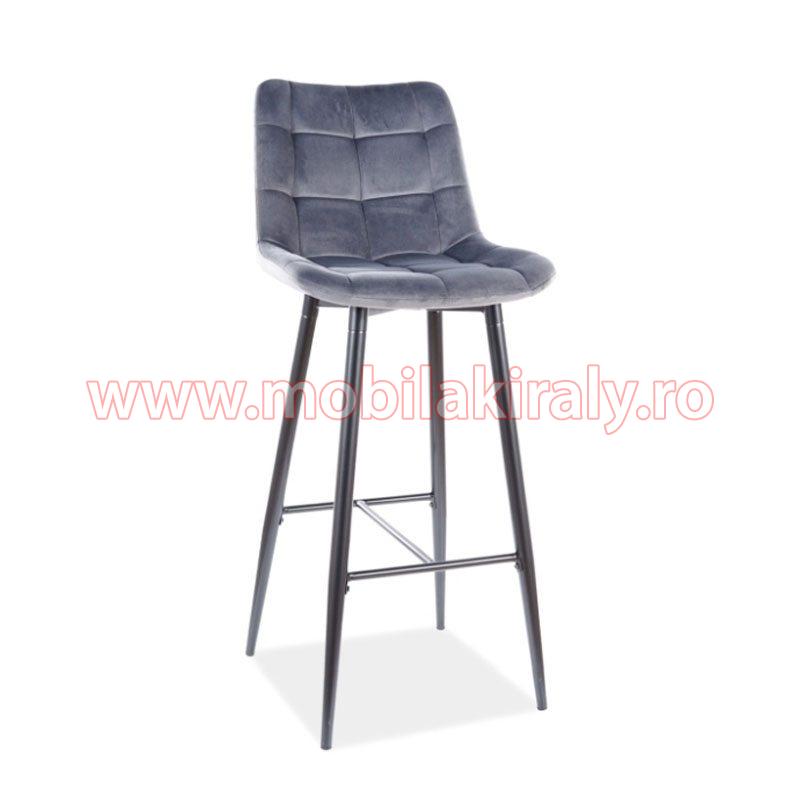 Cadrul este realizat din metal. Sezutul si spatarul sunt tapitate cu stofa.