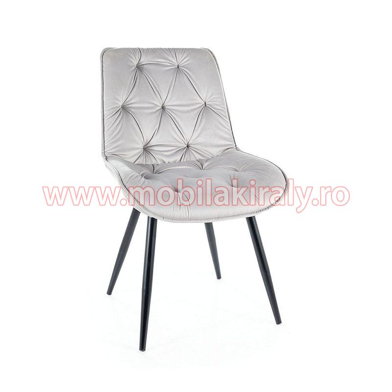 Tapiteria din catifea moale si delicata, face scaunul total diferit si original. Cadrul este metalic.