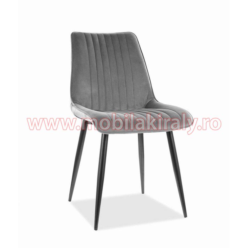 Acest scaun iese în evidenţă în orice spaţiu. Scaun modern, elegant şi confortabil, realizat cu cadru metalic, cu şezutul şi spătarul din spumă poliuretanică moale tapiţată cu piele ecologică, cusută în forme rectangulare ce aduc un plus de stil şi confort.