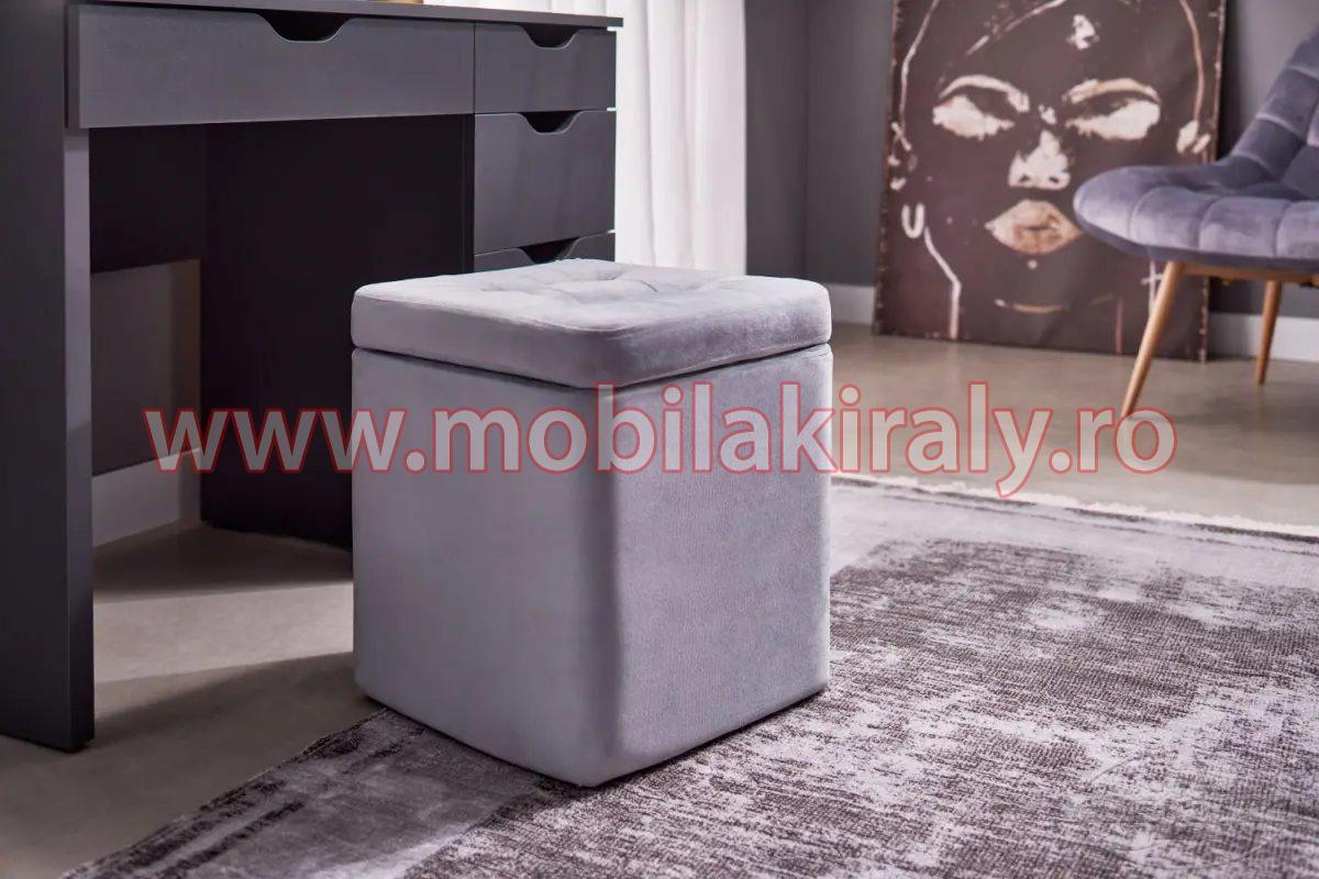 Taburetul rotund cu lada, este tapitat in textil moale si placut la atingere. Cu un design simplu si elegant, este perfect ca suport pentru picioare, scaun suplimentar sau element decorativ, potrivindu-se in orice living sau dormitor modern.